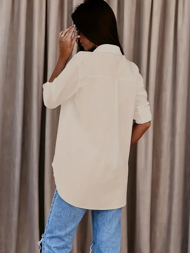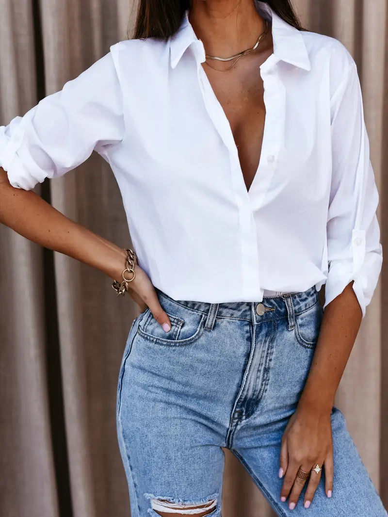 Cette élégante chemise blanche offre une coupe classique avec une touche moderne. Confectionnée dans un tissu doux et respirant, elle est idéale pour un look chic et décontracté aussi bien au bureau qu'en sortie.