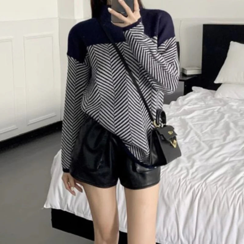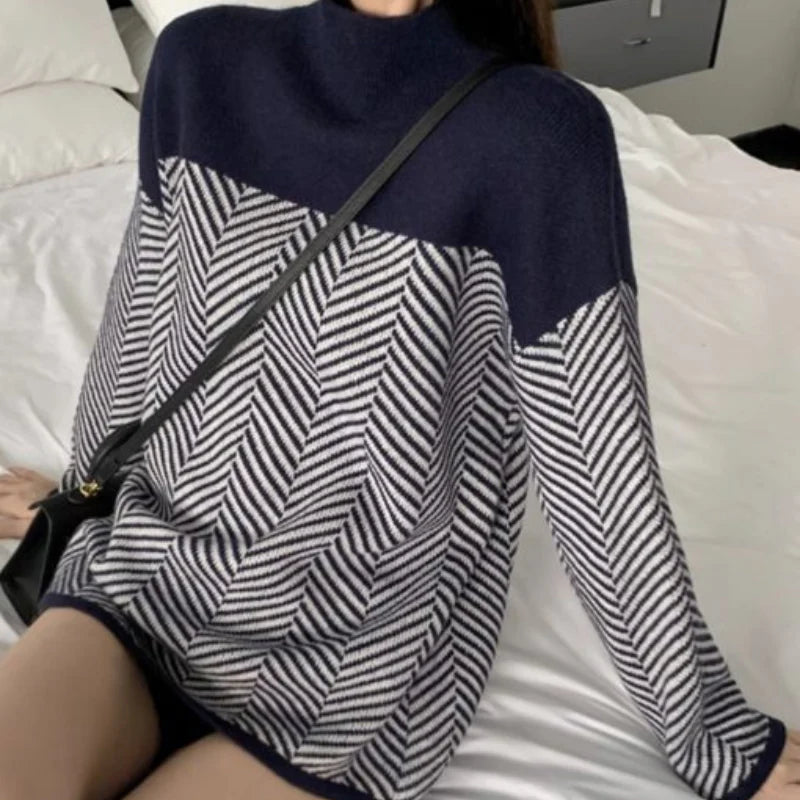 Sophie | Pull en Maille Bicolore | Style Moderne | Laine Douce