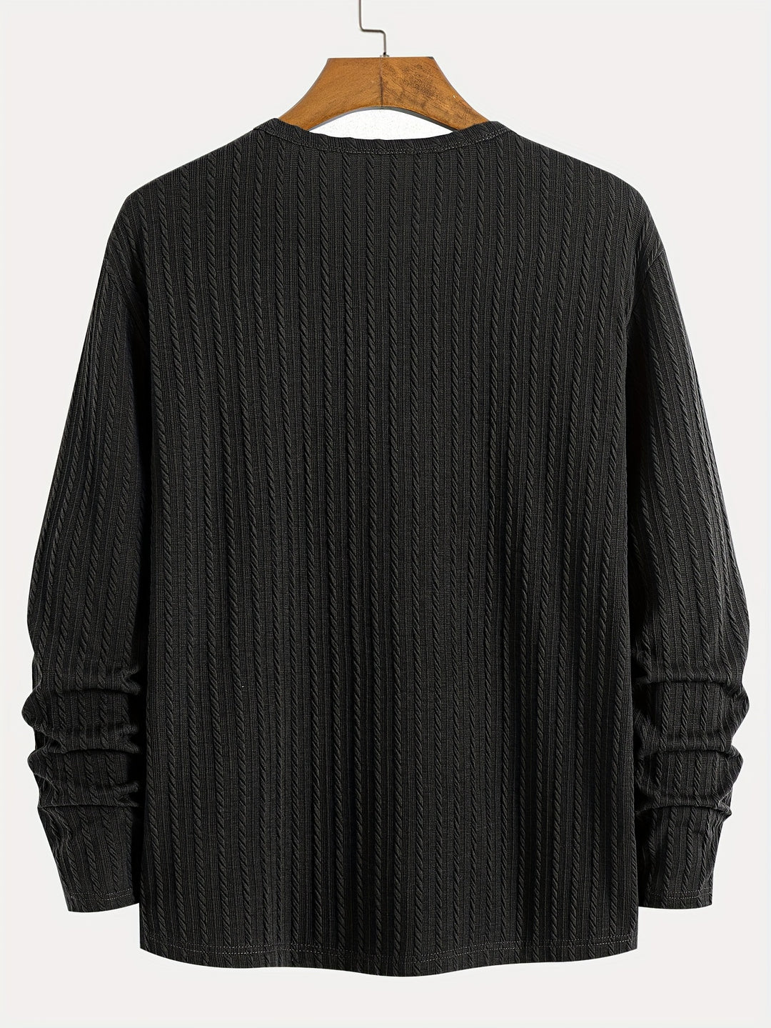 T-Shirt Henley Manches Longues | Coton | Texturé & Élégant