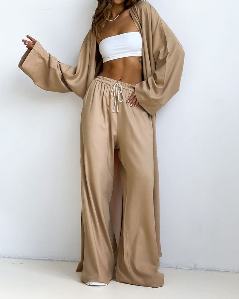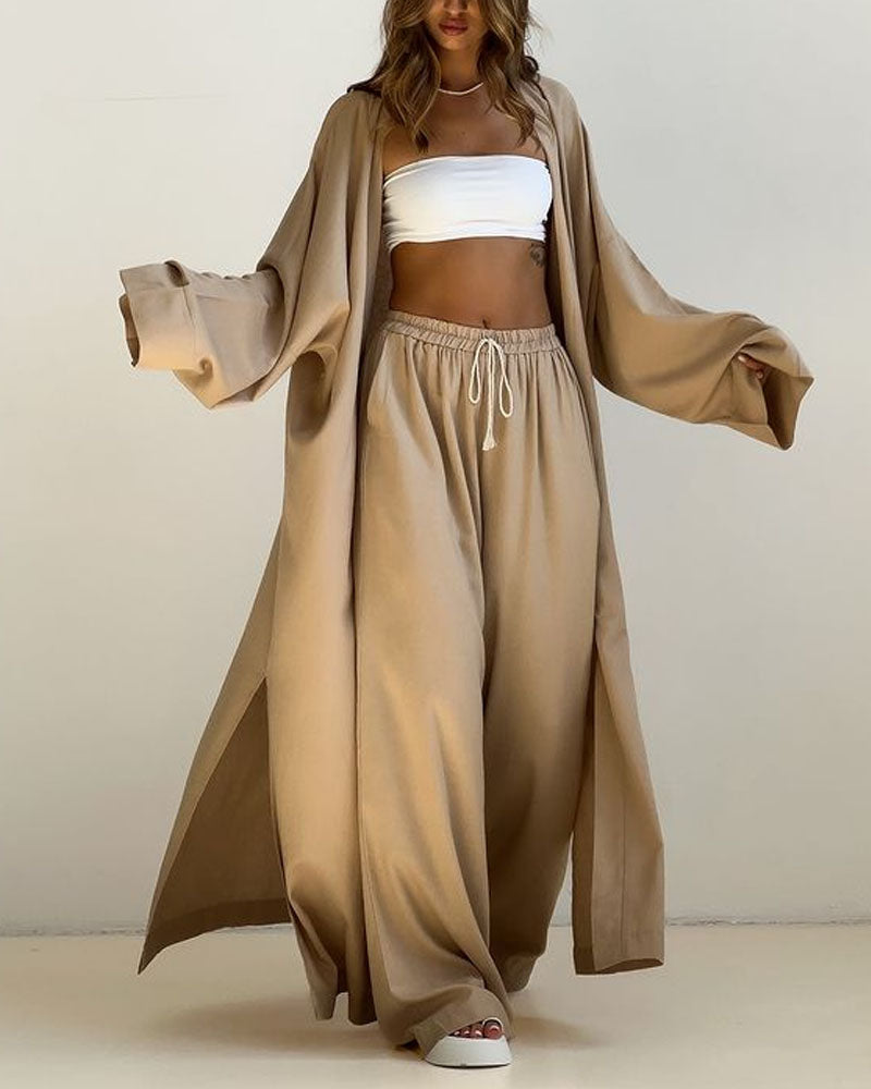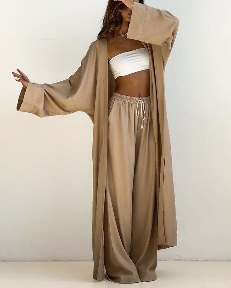 Ensemble Décontracté 3 Pièces | Coton | Kimono Long et Pantalon Ample