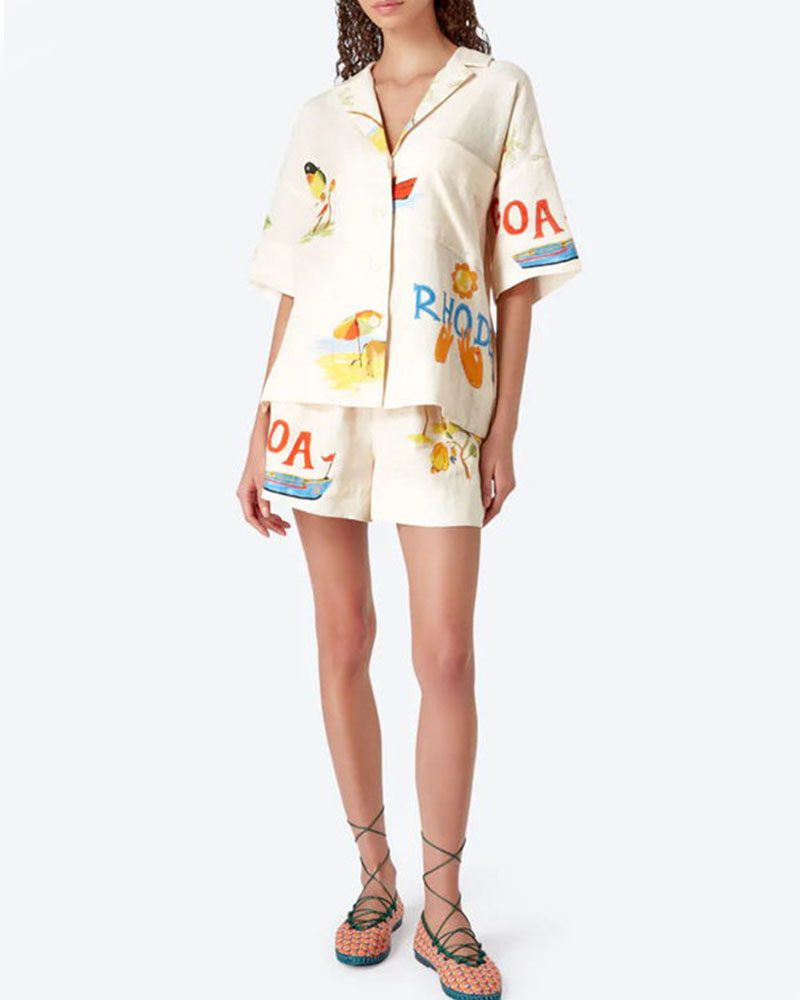 Cet ensemble chemise et short en lin au style tropical est léger, coloré et ultra-confortable.