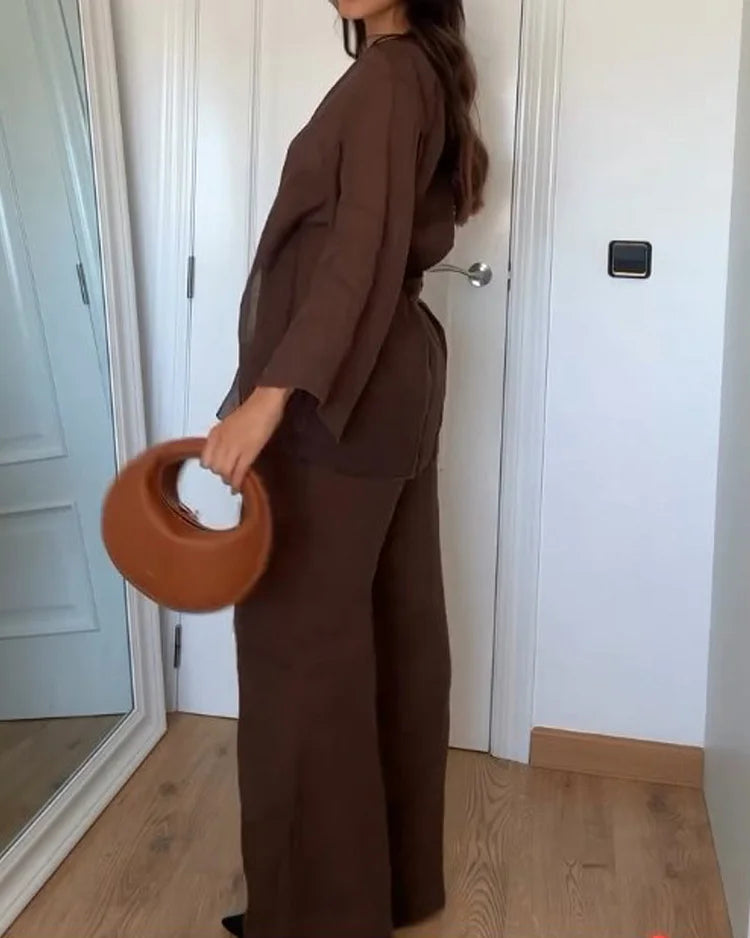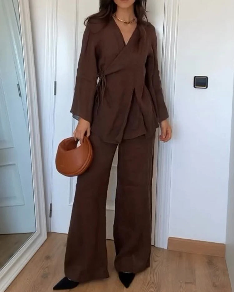Design : Ensemble deux pièces avec veste portefeuille et pantalon fluide