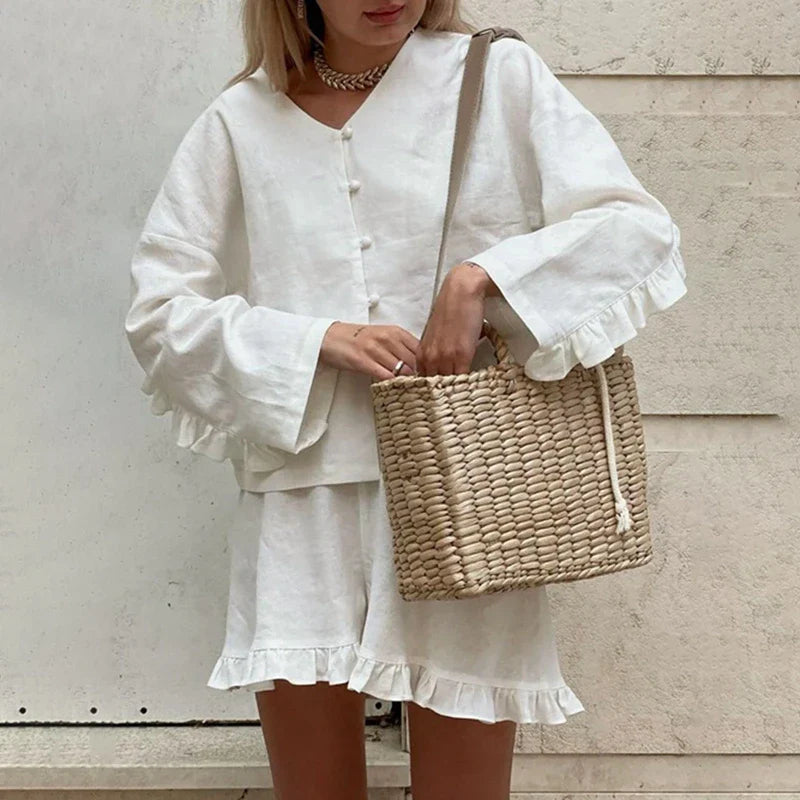 Ensemble Short et Blouse à Volants | Léger et Élégant
