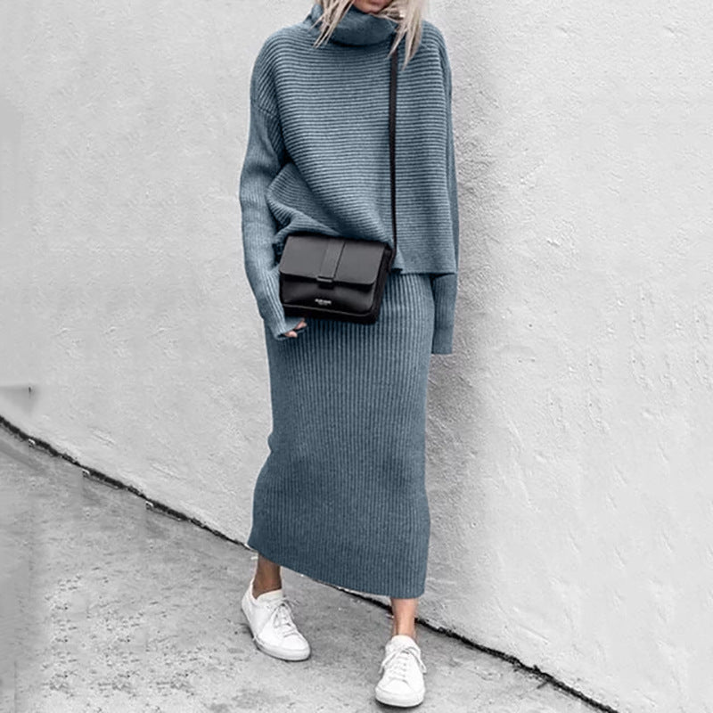 Ensemble Tricot Femme | Pull Oversize & Jupe Longue | Côtelé Doux