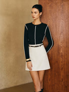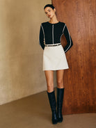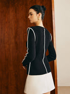 Le pull Alice joue sur les contrastes avec ses détails blancs qui viennent structurer la silhouette. Son tissu en maille côtelée extensible assure un ajustement parfait et un confort optimal.