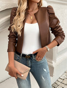 Ce blazer court effet cuir offre une allure raffinée et moderne.