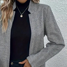 Ce blazer long gris à chevrons est la pièce parfaite pour structurer votre look avec raffinement.