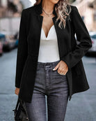 Ce blazer long cintré est la pièce parfaite pour structurer vos tenues avec raffinement.