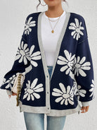 Cardigan Fleur Graphique | Oversize à Motif Floral Contrasté