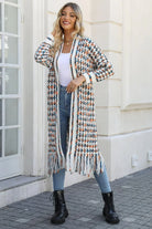 Ce long cardigan en maille crochet apporte une explosion de couleurs et un style unique à votre garde-robe. Son design à franges et son motif multicolore en font une pièce audacieuse, idéale pour un look bohème chic.