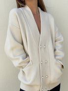 Cardigan Oversize Écru à Boutons Perles | Élégance Douce | Maille Tendance