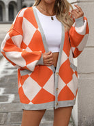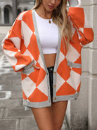 Ce cardigan oversize à motif losanges dynamise vos tenues avec une touche graphique audacieuse.