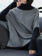 Le Celeste est un poncho en maille bicolore noir et gris, sublimé par un motif chevron raffiné. Sa coupe ample et fluide assure un confort absolu, tandis que son col montant et ses manches longues apportent une touche chic et cosy. Idéal pour un style moderne et intemporel.
