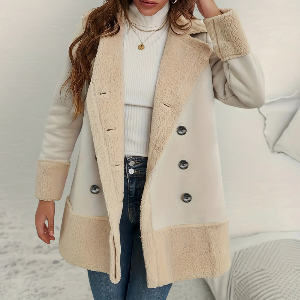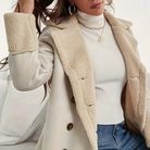 Ce manteau écru à doublure effet sherpa allie douceur, chaleur et élégance dans un design intemporel.