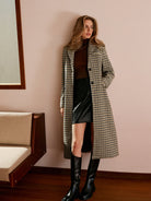 Manteau Long à Carreaux | Beige & Brun | Élégance Classique