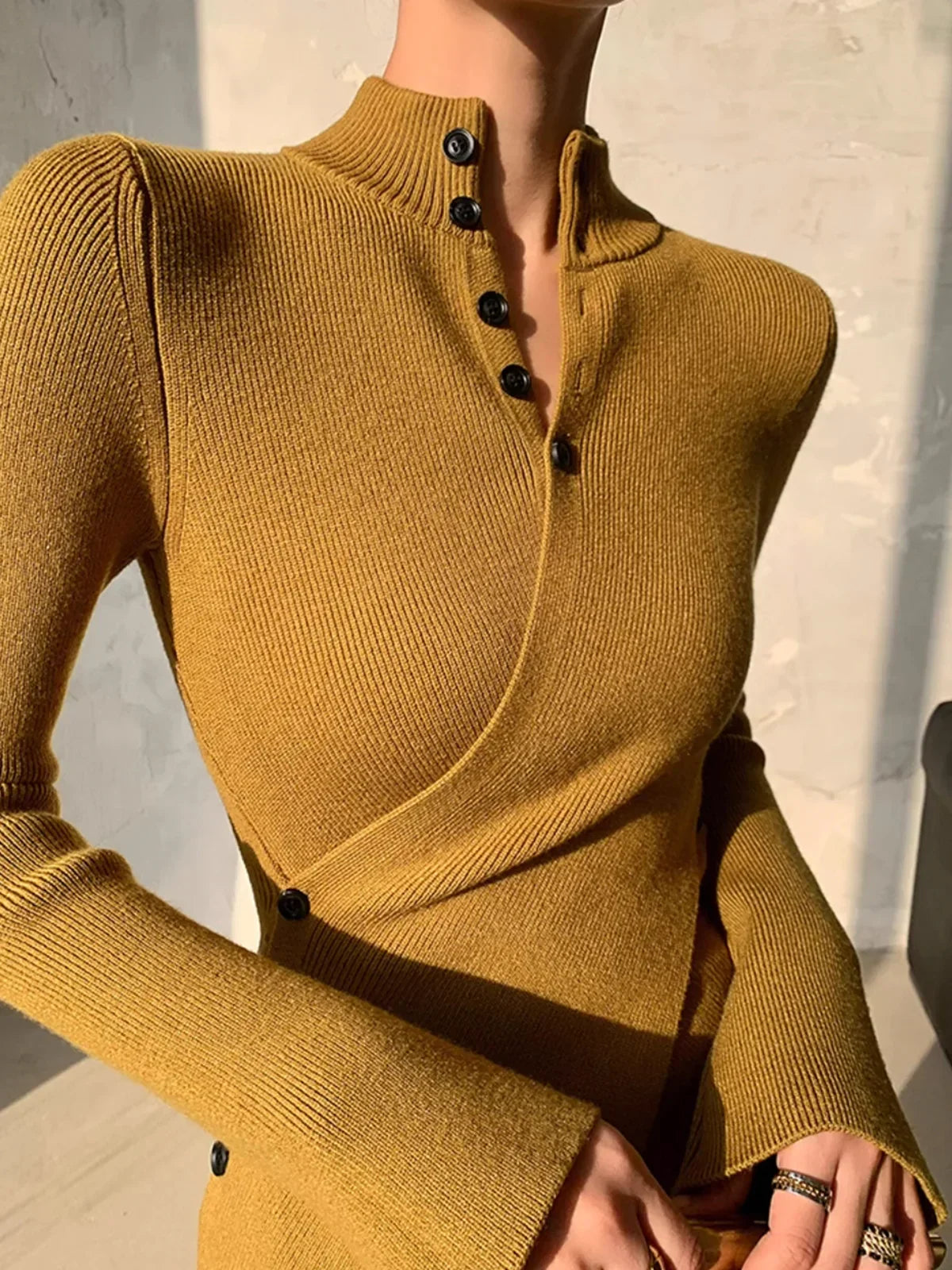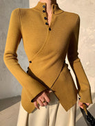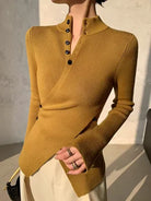 Noa - Pull Asymétrique Boutonné | Maille Côtelée | Élégant & Moderne