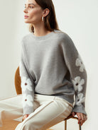 Pull Gris à Fleurs | Coupe Oversize | Maille Douce et Fantaisie