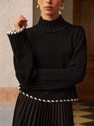 Pull Noir à Col Montant avec Détails Coquillage | Élégance Artisanale | Taille Cintrée