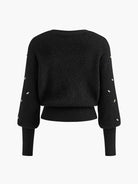 Ce pull noir orné de perles combine sophistication et confort dans une coupe douce et légèrement ample.