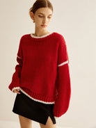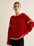 Pull Rouge en Maille | Finitions Contrastées | Chaud & Décontracté