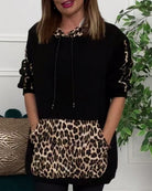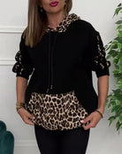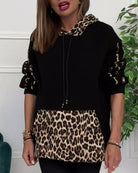 Sweat à Capuche Noir et Léopard | Style Décontracté et Détail Audacieux