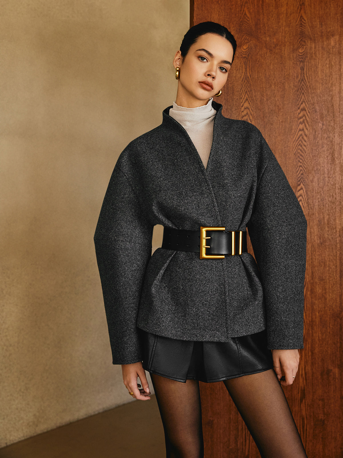 Veste Ceinturée | Gris Anthracite | Structurée et Élégante