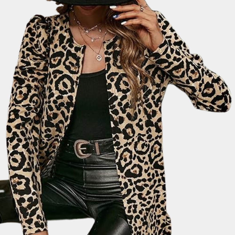 Cette veste à imprimé léopard apporte une touche sauvage et chic à toutes vos tenues.