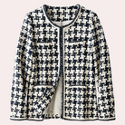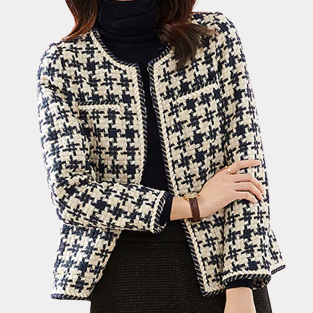 Cette veste à motif pied-de-poule revisité est un indispensable du dressing féminin.