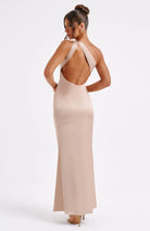 Clara | Robe Longue Asymétrique Satinée | Élégance Minimaliste | Coupe Ajustée