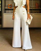 Combinaison Blanche Élégante | Coton | Volants et Pantalon Palazzo