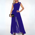 • Design : Combinaison effet robe avec jupe fendue fluide par-dessus