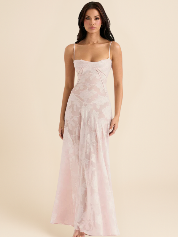 Éclat | Robe Longue Femme Dentelle Florale Bretelles Fines