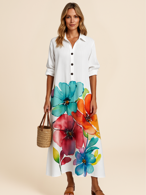 Fleur d'Été | Robe Chemise Longue Femme Imprimé Aquarelle
