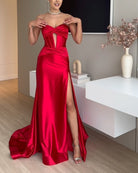 Robe Bustier Satinée Rouge | Viscose | Élégance Audacieuse & Détail Glamour