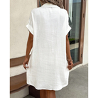 Cette robe chemise blanche à boutons est parfaite pour un look frais, naturel et confortable.