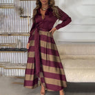 Détails : col chemise, manches longues, ceinture à nouer, rayures larges