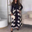 Les rayures larges bicolores et la finition satinée apportent éclat et raffinement, idéale pour un événement chic ou une soirée habillée.
