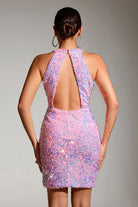 Robe Courte à Sequins | Col Montant | Éclatante et Glamour