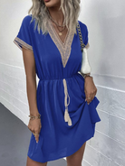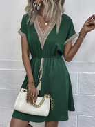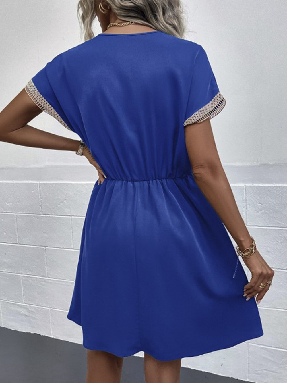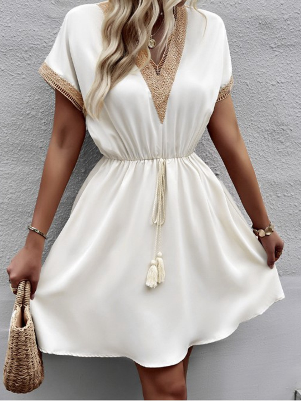 Ajoutez une touche de charme estival à votre garde-robe avec cette robe courte bohème ornée de détails en dentelle.