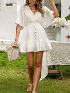 Les manches papillon et le dos noué apportent une touche féminine et aérée, parfaite pour les journées ensoleillées ou un événement spécial en plein air.