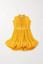 Robe Courte Plissée | Jaune Safran | Volumineuse et Éclatante