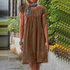 Cette robe courte plissée à manches courtes allie confort et élégance avec une touche de simplicité raffinée.