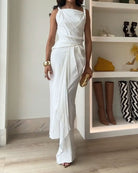 Robe Drapée Blanche | Coton | Élégante & Asymétrique