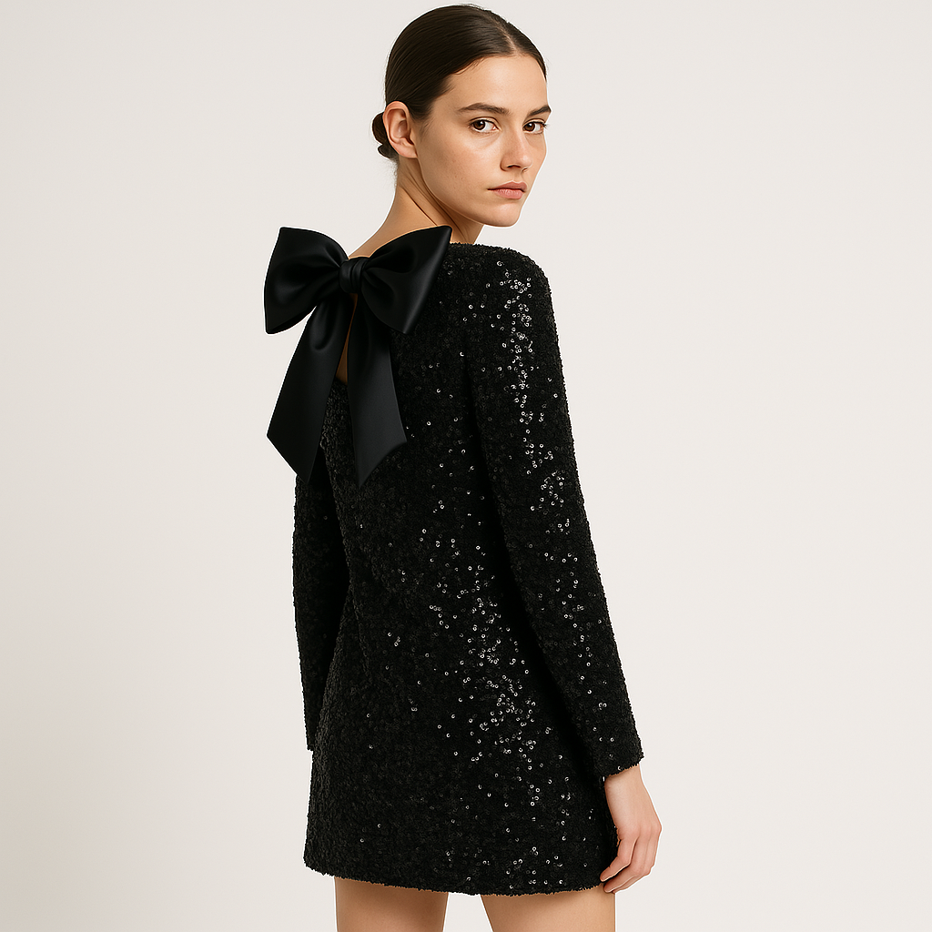 • Détail dos : Grand nœud noir en contraste pour une touche couture inattendue