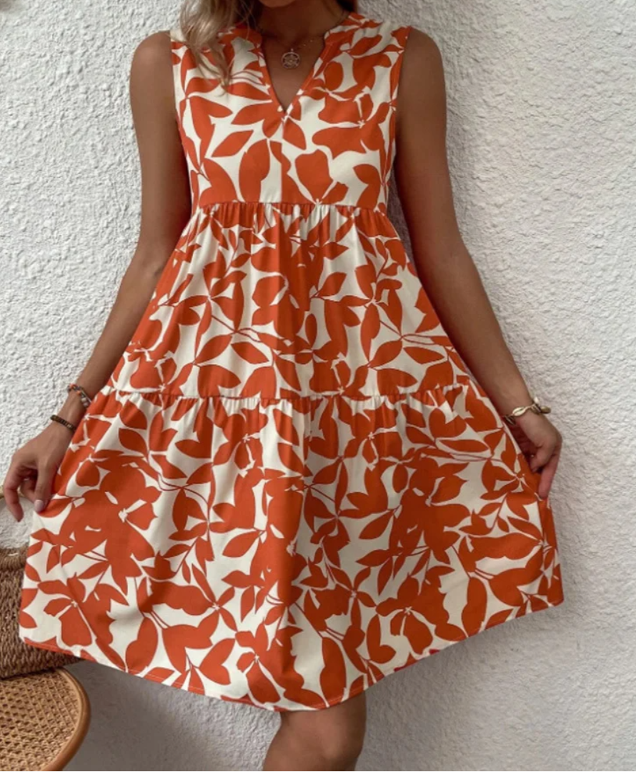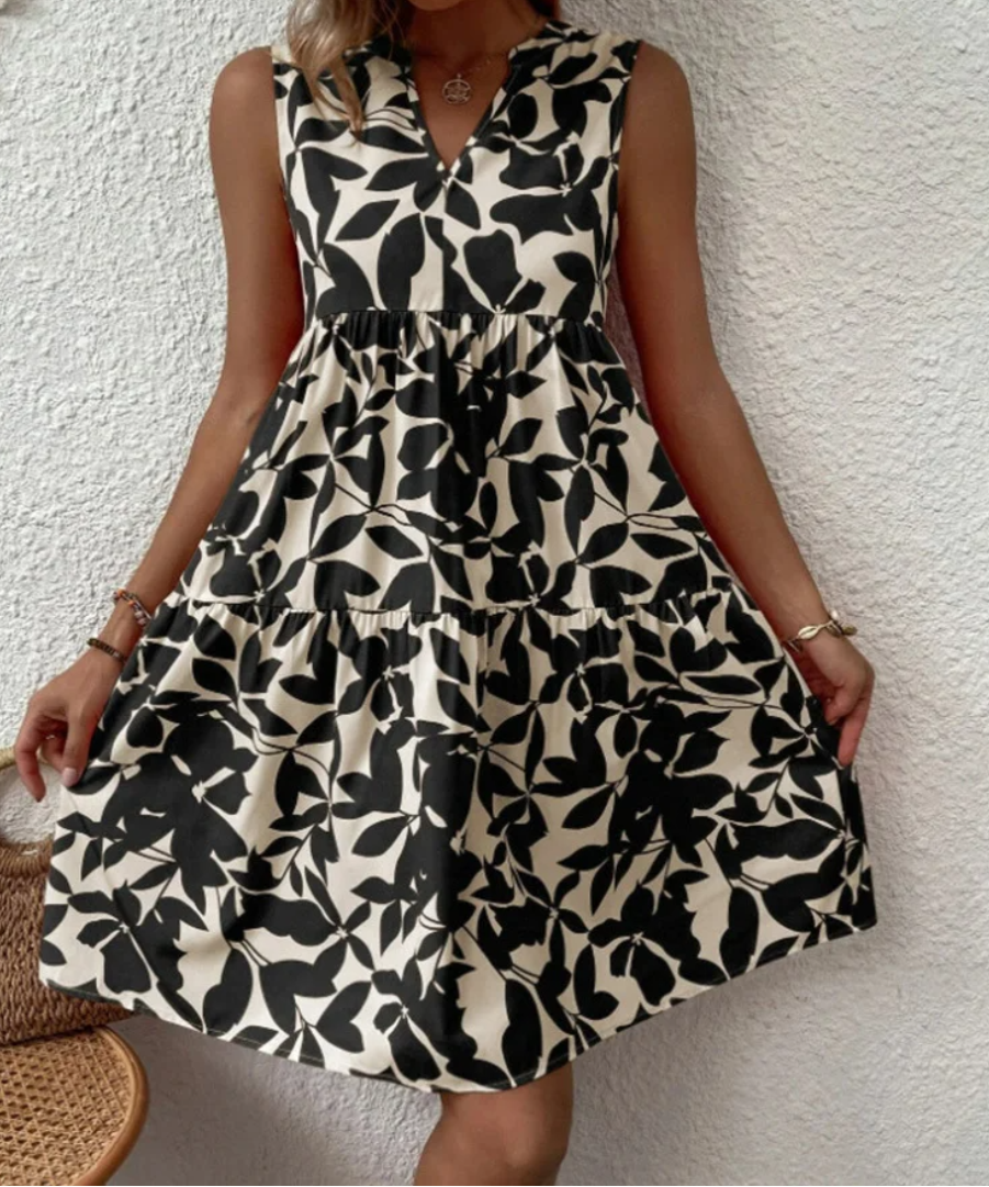 La coupe évasée sans manches et le coton doux assurent un confort ultime, idéal pour les journées chaudes.