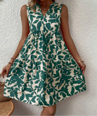 Cette robe légère avec un motif feuillage vert respire l'élégance et la fraîcheur sans effort.