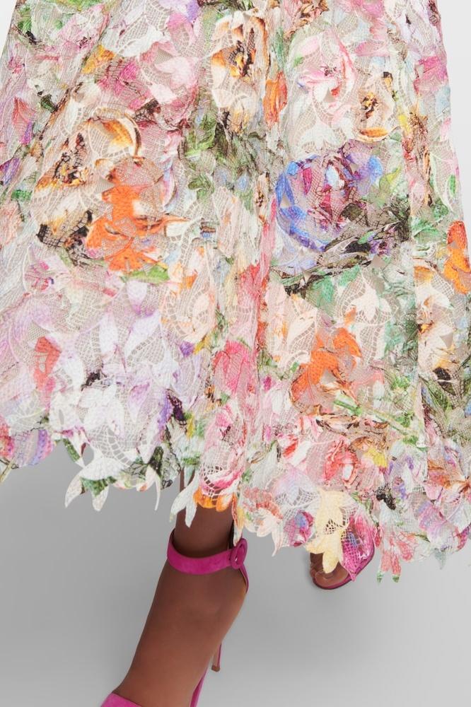 Cette robe florale mi-longue apporte une touche de romantisme et de sophistication à toutes vos occasions spéciales.