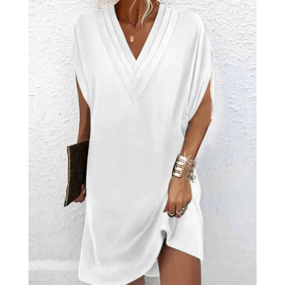 Robe Fluide Femme | Col V Élégant | Style Décontracté-Chic