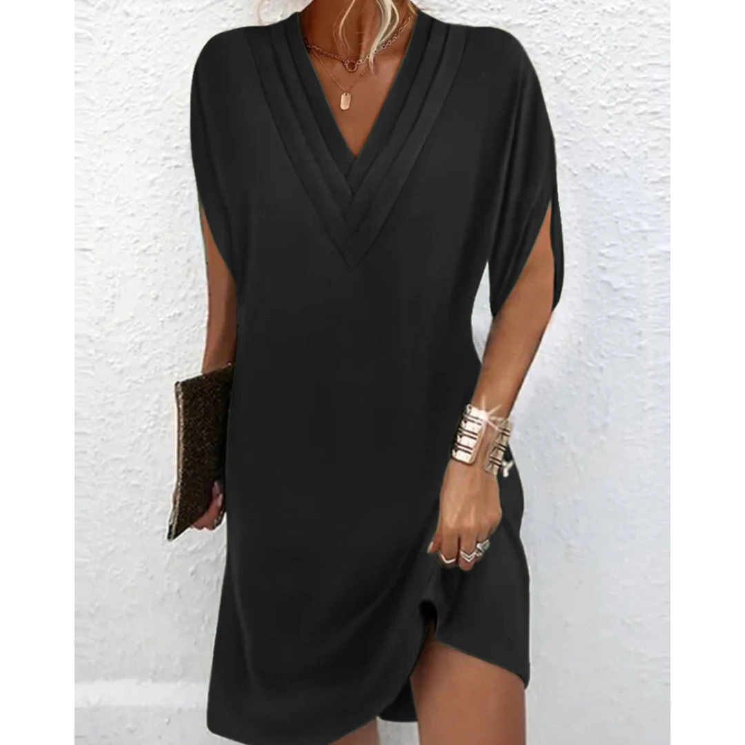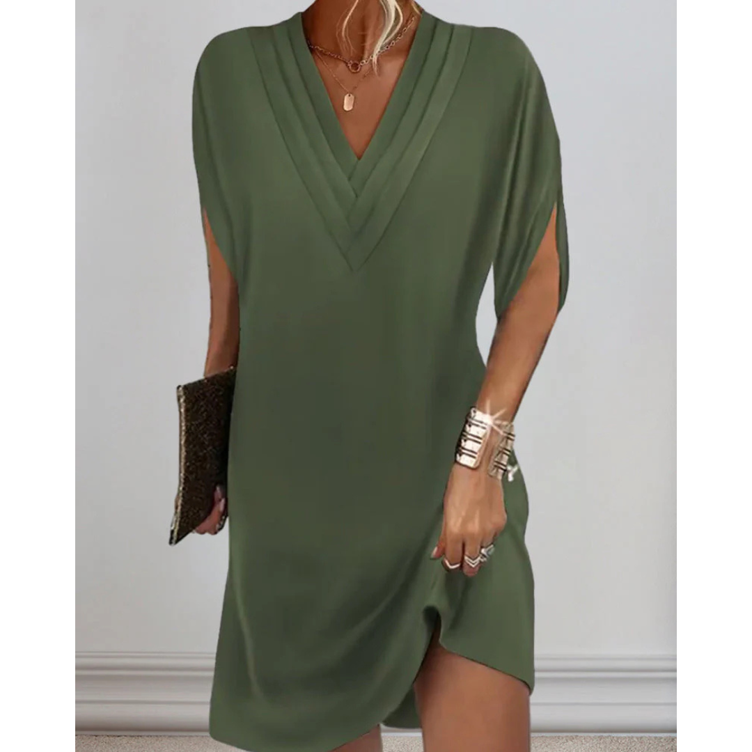 Robe Fluide Rose | Col en V Superposé | Élégance Décontractée