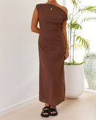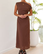 • Design : Robe longue asymétrique à une épaule avec drapé doux